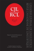 Oxford University Press PLoS ONE Poznan Studies in Contemporary Linguistics Probus Proceedings of the Royal Society Qatar National Research Funds Revue québécoise de linguistique Romance Turn Volume Studies in Logic Text Encoding Initiative The Linguistic Review The MIT Press University of Chicago Press WORD Word Structure |